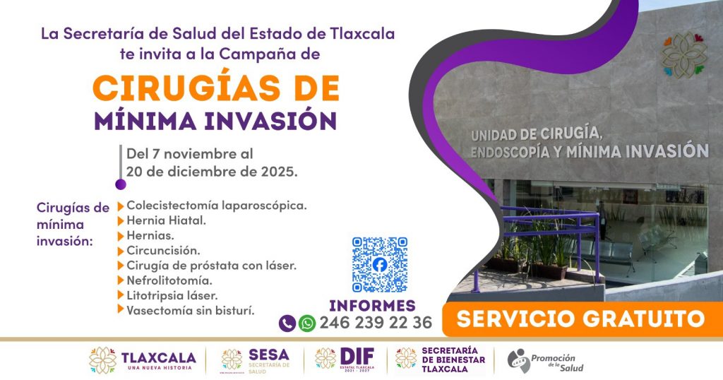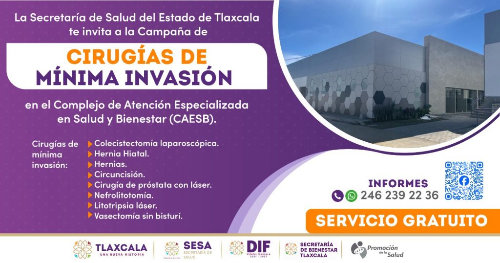La Secretaría de Salud del Estado de Tlaxcala te invita a participar en la Campaña de Cirugías de Mínima Invasión, con servicio totalmente gratuito