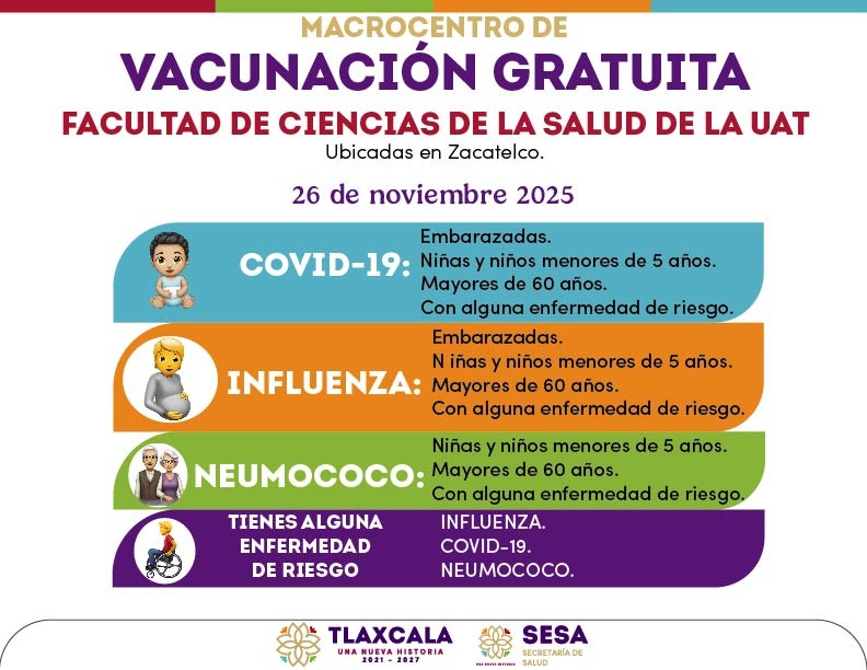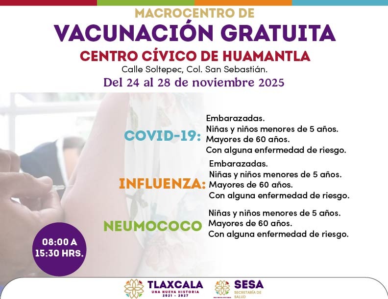Te invitamos a revisar las imágenes que acompañan esta publicación para conocer las fechas, horarios y puntos específicos donde se llevará a cabo la Macrojornada de Vacunación.